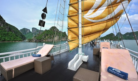 19.00 – 21.30 Serve elegant Paradise dinner. Start dinner in Traditional Bao Dai dress and photo shoot with captain and manager on board.